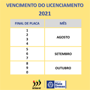 Os proprietários de veículos com placas finais 5, 6 e 7 devem efetuar o pagamento do Licenciamento 2021 até o dia 30 de setembro.