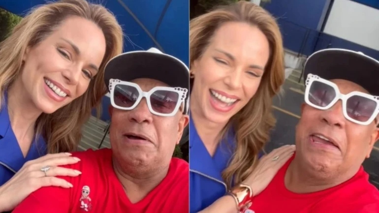 “É assim aqui, agora é família. Bem-vindos!”, disse ele, abraçando a apresentadora.