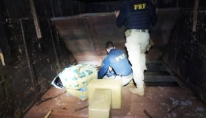 Nesse momento, os policiais conseguiram localizar, no assoalho do semirreboque, um compartimento oculto onde havia 325 tabletes de pasta base de cocaína.
