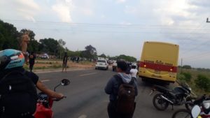 Manifestante bloqueiam MT-040 para protestar contra aumento de tarifa da passagem de ônibus intermunicipal