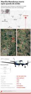 A informação de que a cantora de 26 anos estava no avião foi passada pelo Corpo de Bombeiros. A Polícia Civil informou que os cinco ocupantes da aeronave morreram –além de Marília, o piloto, o copiloto, o seu produtor Henrique Ribeiro e o seu tio e assessor Abicieli Silveira Dias Filho.