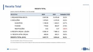 A despesa orçamentária corrente nominal no estado, teve um incremento de 6,2%. Elas se referem as manutenções mensais, custeios dos órgãos e contratos. A saúde teve maior aumento nos gastos em 2021, chegando a 28%, por conta despesas da pasta com a pandemia.