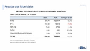 Em Mato Grosso outra grande responsável pelo superávit foi a arrecadação do Imposto sobre Circulação de Mercadorias e Serviços (ICMS), que teve um crescimento de 60% na agropecuária, 25% no comércio e serviços e 40% na indústria, em 2021, comparando ao mesmo período de 2020, o que permitiu um repasse aos municípios 32,1% maior que o realizado em 2020.