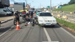 Um motociclista morreu em um acidente envolvendo três motos, um carro e um caminhão na Avenida da Feb, em Várzea Grande, região metropolitana de Cuiabá, nessa quinta-feira (27).
