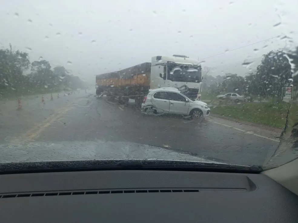O condutor afirmou que não conseguiu frear a tempo e, por isso, bateu no veículo de passeio.