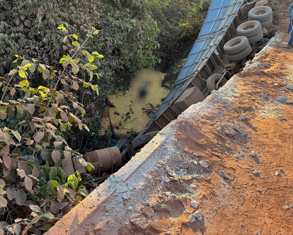 Um motorista, que não teve a identidade divulgada, morreu após o caminhão que ele conduzia, carregado com milho, tombar da ponte sobre o Rio Córrego Grande, na estrada Pontal do Verde, em Sorriso, a 420 km de Cuiabá, nesta quinta-feira (3). Testemunhas registraram o veículo destruído após a queda (assista acima).