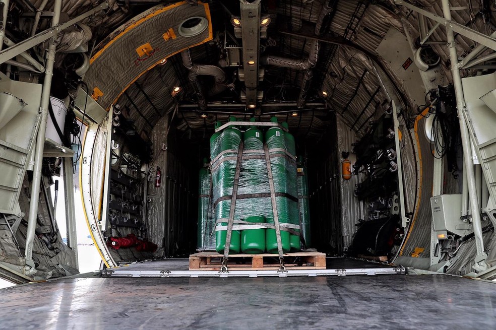 Mato Grosso recebeu 340 cilindros de oxigênio do Governo Federal neste domingo (28). Os insumos chegaram em Sinop, no norte do estado por volta das 10h30 e das 12h30, em aviões da Força Aérea Brasileira (FAB).