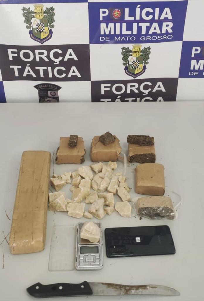 Policiais militares da Força Tática prenderam uma mulher de 35 anos por tráfico ilícito de drogas, na tarde desta segunda-feira (09.05), em Rondonópolis. Com a suspeita, foragida do regime semiaberto do Mato Grosso do Sul e integrante de uma organização criminosa, foram apreendidas tabletes e porções de substâncias análogas a maconha e pasta base de cocaína.