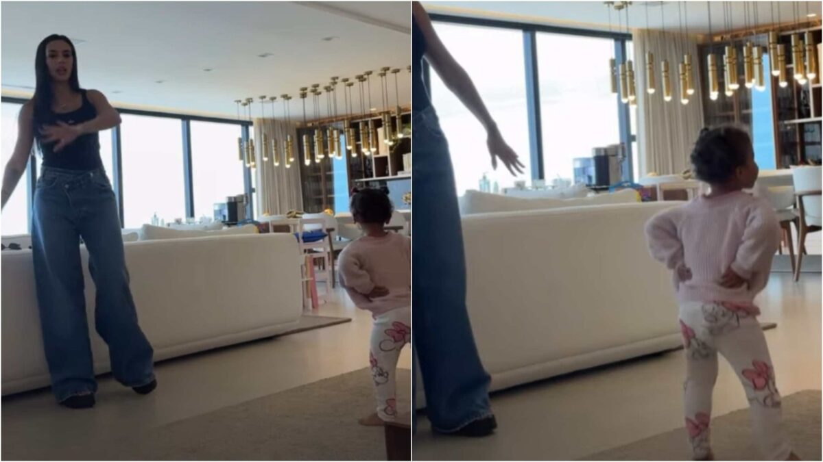 Neymar, 33 anos, flagrou um momento fofo da companheira, Bruna Biancardi, 31, com a filha mais velha do casal, Mavie, de quase dois anos. As duas foram registradas interagindo durante uma dança que a menina curtia, acompanhando uma programação exibida na TV.