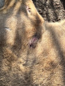 A onça também tinha quatro feridas pelo corpo, supostamente causadas pela berne – manifestação parasitária causada por larvas de uma mosca varejeira.