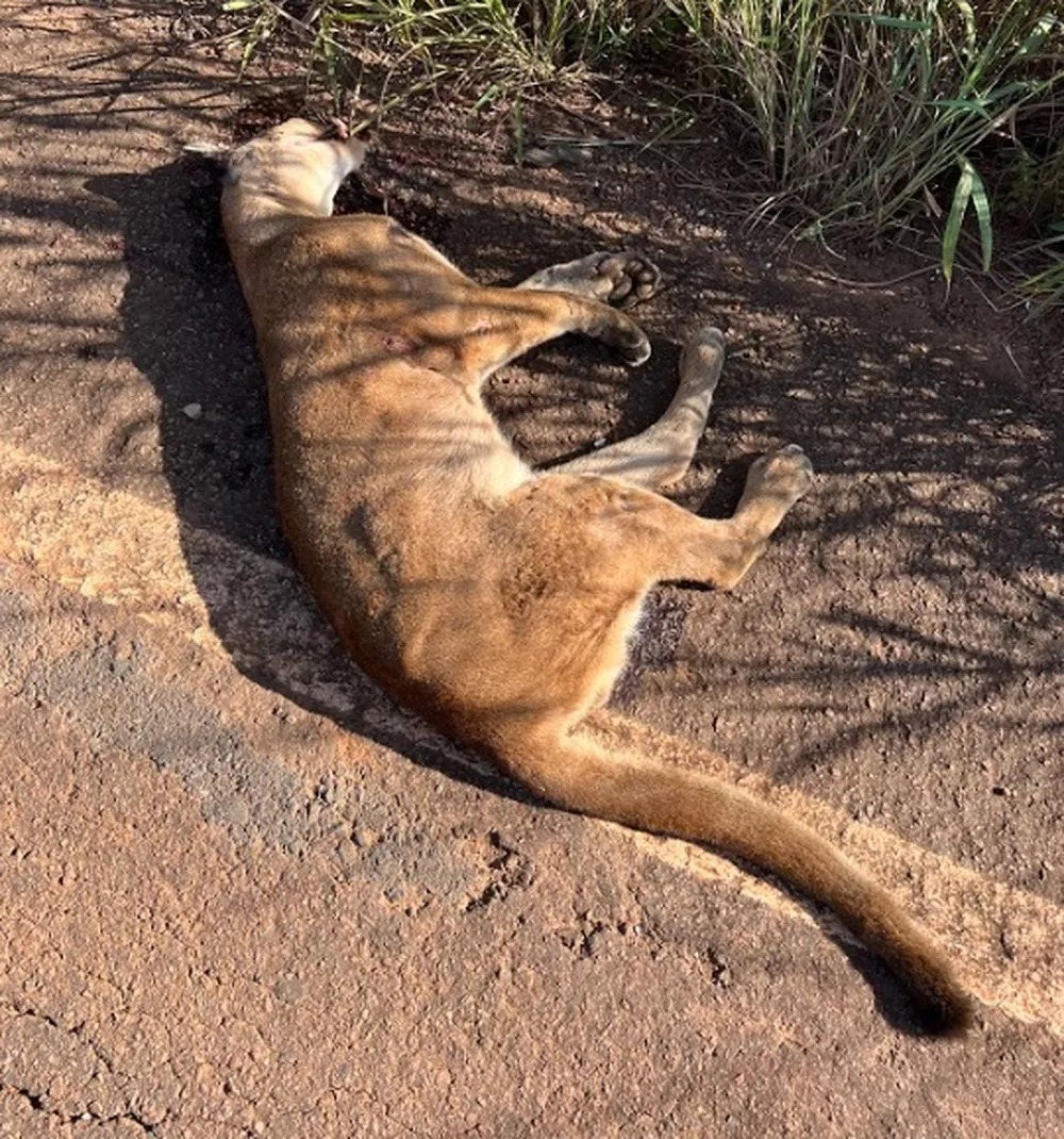 Uma onça-parda foi encontrada morta às margens da MT-251, entre Cuiabá e Chapada dos Guimarães, a 65 km da capital, nesse domingo (24). A suspeita é que o animal tenha sido atropelado.