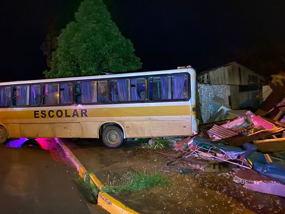 Ônibus escolar invade casa e atinge família em Sorriso (MT); imóvel fica destruído