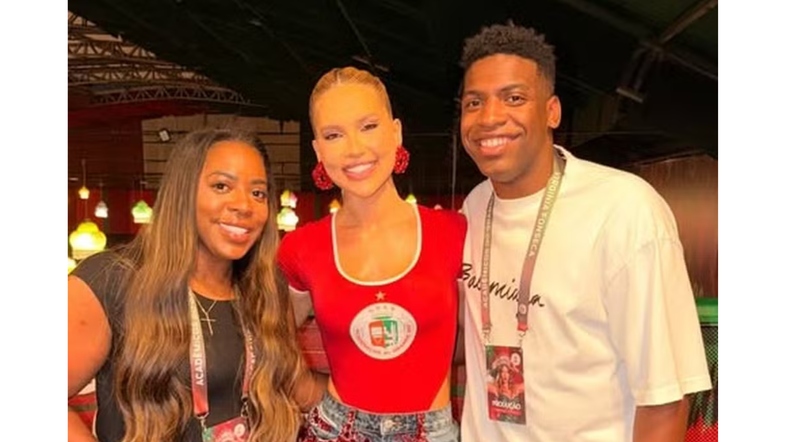 “Vieram me acompanhar hoje também”, escreveu a Rainha de Bateria ao posar ao lado da sogra, Fernanda Cristina, e do cunhado, José Oliveira Neto, de 17 anos.