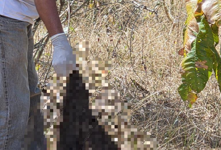 Segundo a análise técnica, os indícios observados na cena do crime apontam que a morte tenha ocorrido em circunstâncias de homicídio, já que a vítima apresentava sinais de tortura, com as pernas amarradas e a cabeça localizada a cerca de 10 metros do corpo, caracterizando decapitação.