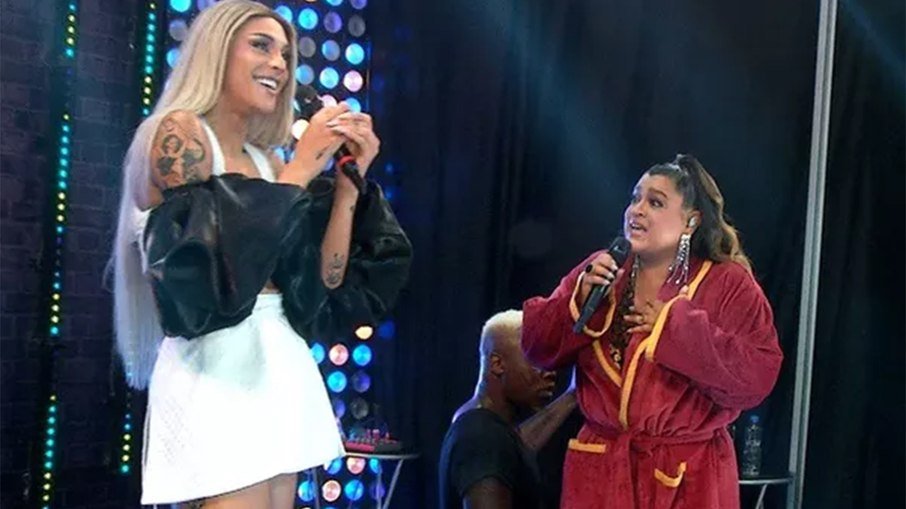 Pabllo Vittar e Preta Gil animaram os brothers do “BBB 21” na festa que rolou durante a madrugada desta quinta-feira (22) . A drag queen encerrou o show cantando “Bandida”, parceria com Pocah, quando Preta reparou em um anel no dedo da cantora. “Está bandida, mas está com o anel no dedo. O que é isso, está noiva?”, perguntou.