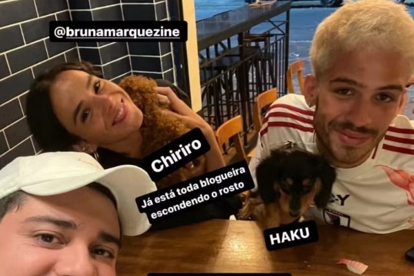 João Guilherme e Bruna Marquezine foram fotografados enquanto passeavam com seus cachorros: Chiriro e Haku. Em foto viralizada nas redes sociais, nesta quinta-feira, 8, um possível amigo do casal compartilhou o clique em que eles aparecem com os bichinhos em um restaurante no Rio de Janeiro.