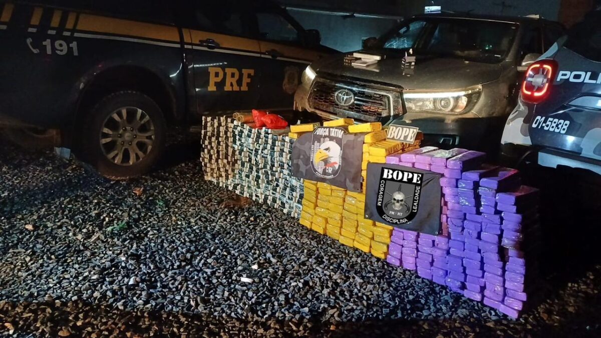 PM e PRF prendem motorista com 350 kg de droga em malas na carroceria de caminhonete