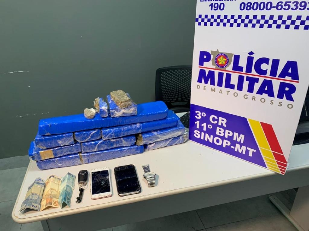 O 11º Batalhão de Polícia Militar prendeu dois homens com 10 quilos de maconha, na última segunda-feira (15.11), em Sinop. A apreensão do entorpecente gerou um prejuízo de mais de R$ 25 mil para a organização criminosa.