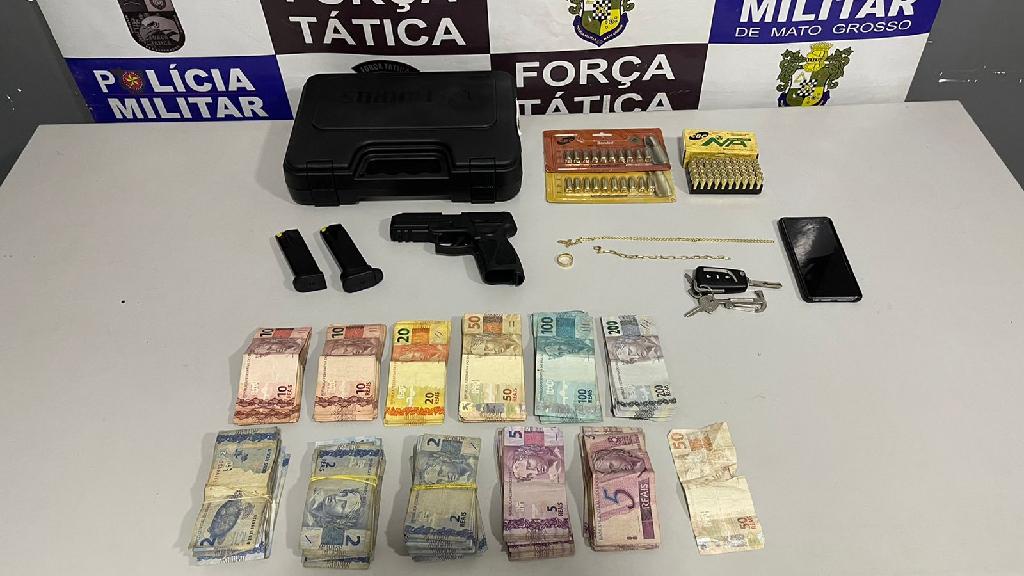 PM prende homem com pistola, 70 munições e R$ 10,8 mil em dinheiro em Rondonópolis