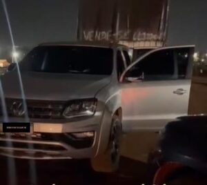 Por volta das 22 horas, os militares do 5º Batalhão foram informados sobre a localização de uma caminhonete modelo Amarok, com queixa de roubo, no bairro José Sobrinho, em Rondonópolis.