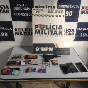 Policiais militares do 9º BPM e do Batalhão de Trânsito prenderam um homem, de 34 anos, por roubo e recuperaram dois veículos levados de uma empresa, na tarde desta segunda-feira (28.03), em Cuiabá. Na ação, foram apreendidas um simulacro de arma de fogo e munições, e recuperados cartões bancários e documentos das vítimas.