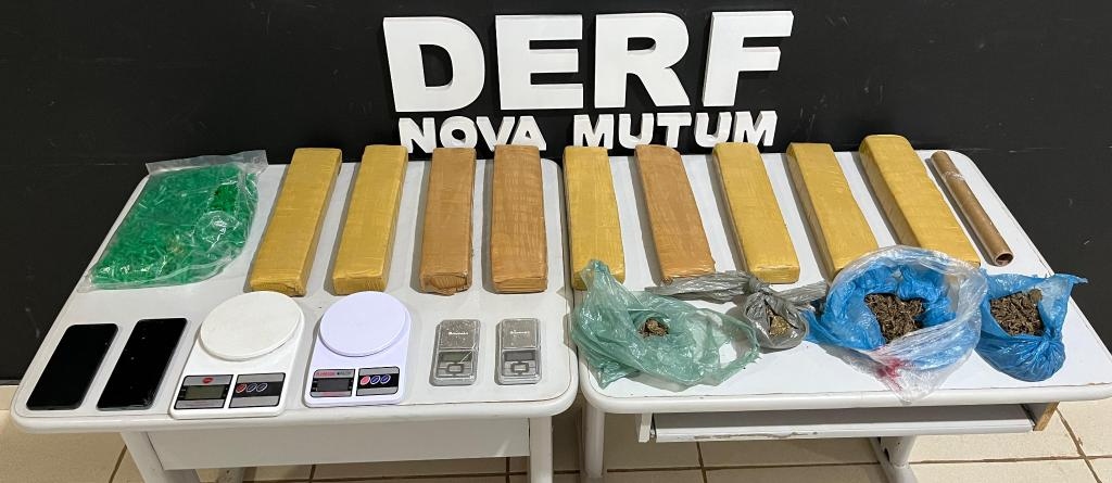 Nove tabletes de maconha foram apreendidos pela Polícia Civil, na tarde de quinta-feira (11.9), no município de Nova Mutum. A ação da Delegacia Especializada de Roubos e Furtos (DERF), resultou também na prisão em flagrante de dois homens.