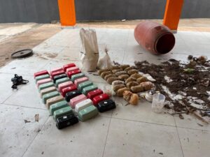 No mesmo local, equipes da DRE localizaram um tambor enterrado com 20 tabletes grande de pasta base de cocaína