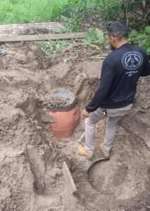 Novamente foram percorridos cerca de 90 metros da trilha existente no fundo do imóvel, até o ponto onde estava ocultada a 1,1 tonelada de maconha, e os policiais civis passaram a escavar.