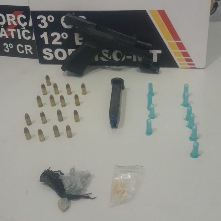Policiais militares do 12º Batalhão prenderam um homem de 18 e apreenderam três adolescentes por tráfico de drogas e porte ilegal de arma, nesta terça-feira (1º.10), em Sorriso. Com a quadrilha, foram apreendidas porções de cocaína e uma pistola carregada com 17 munições.