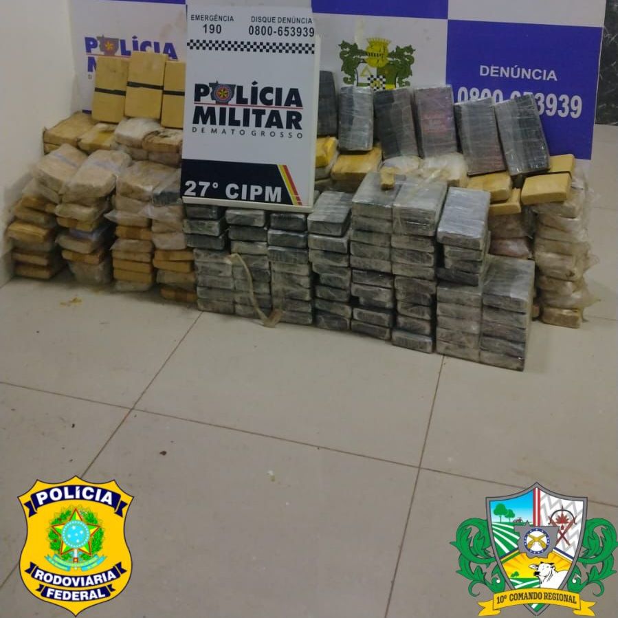 Polícia Militar e PRF apreendem 243 tabletes de pasta base e cocaína em Confresa