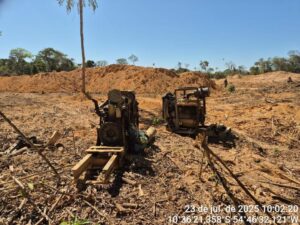 Na área, foram encontrados equipamentos utilizados na extração de minérios, como motobombas, planta de dragagem, combustível e um trator de esteira. Os militares identificaram que a área possuía Cadastro Ambiental Rural, mas não havia documentação que autorizasse a atividade de mineração. Nenhum suspeito foi encontrado no local.