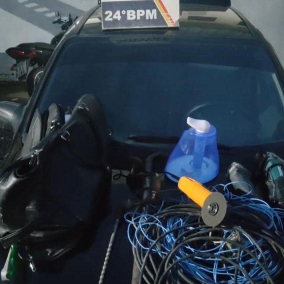 O homem foi detido e os militares realizaram checagem ao chassi do carro, identificando que as placas registradas não se tratavam das mesmas que estavam no veículo. Dentro do porta-malas, a PM localizou também duas ferramentas esmerilhadeiras e roupas iguais, semelhantes a uniformes.