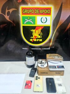 Já no bairro Costa Verde, as equipes receberam diversas denúncias sobre tráfico de drogas em uma residência. Diante dos fatos, os militares se deslocaram ao imóvel, abordaram e identificaram outros dois homens. À PM, eles confessaram que frequentam o local para adquirir e comercializar entorpecentes. Os militares apreenderam outras cinco porções de maconha, duas balanças de precisão e um rádio comunicador.