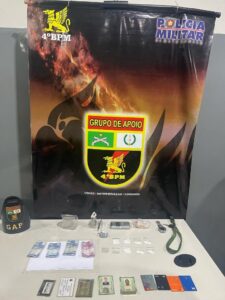 Durante patrulhamento tático em decorrência da Operação Tolerância Zero na Região Metropolitana, os policiais militares flagraram um homem agindo de forma suspeita, em frente a um conjunto de residências, no bairro Jardim dos Estados, e fazendo uso de entorpecentes.