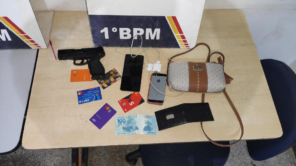 A equipe seguiu em direção ao local indicado, um terreno baldio, e localizaram o restante dos objetos levados, além de encontrar um simulacro de arma de fogo, que teria sido utilizada no crime. Diante dos fatos, os dois suspeitos foram encaminhados para a Central de Flagrantes para o registro da ocorrência e demais providências do caso.
