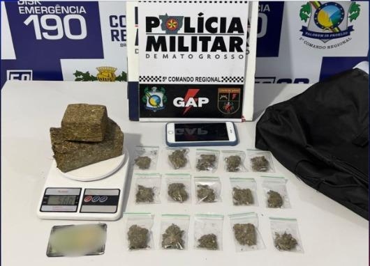 Policiais militares do 5º Comando Regional prenderam um homem, de 18 anos, por tráfico ilícito de drogas, na noite desta quinta-feira (17.7), em Barra do Garças. Com o suspeito, foram apreendidos dois tabletes e quinze porções de maconha.