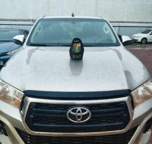 Após uma denúncia de que um veículo roubado estaria em uma residência no Loteamento Menino Jesus, os policiais se deslocaram até o endereço para checar a informação. Durante as buscas, foi possível localizar o veículo, uma camionete Hilux cor prata. Após checagem, foi constatado se tratar de um produto roubado.