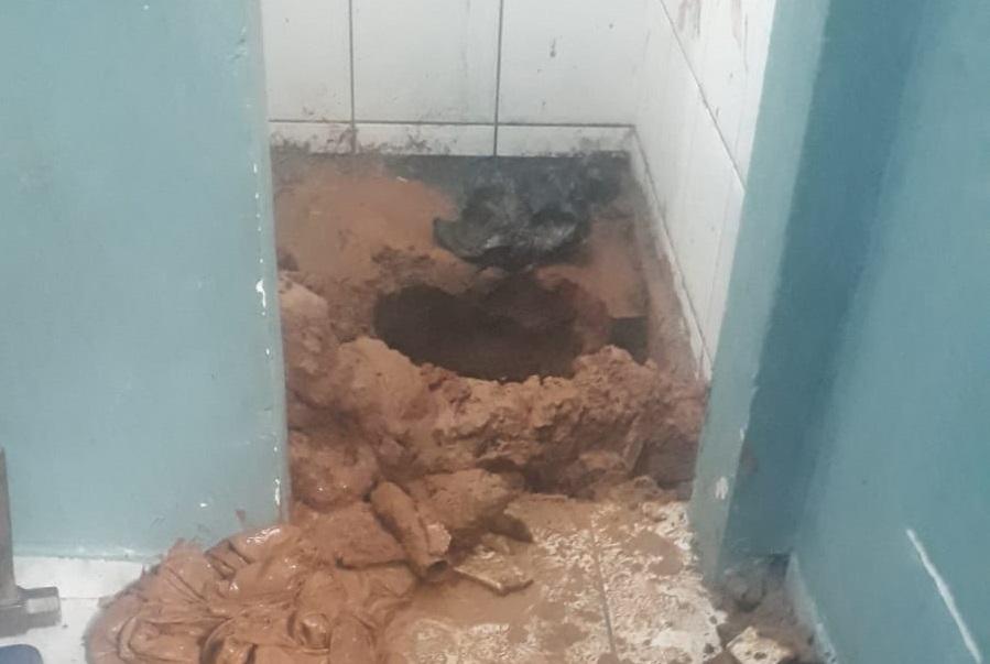Escavação foi encontrada no banheiro da cela de triagem