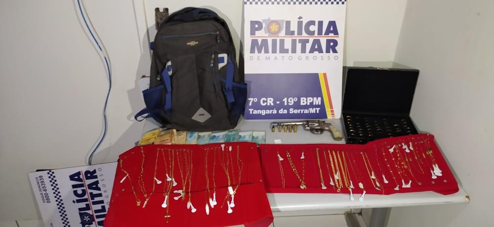 Ele recebeu voz de prisão e se entregou. Seu comparsa fugiu antes da chegada dos policiais e não foi localizado. Na ação, foram recuperados 33 correntes, 44 alianças, 14 pulseiras – tudo em ouro e R$ 8.360,00 em dinheiro.