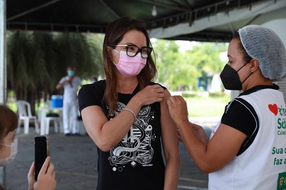 Primeira-dama de MT toma 4ª dose contra Covid antes da liberação para o público em geral por ser do grupo de risco