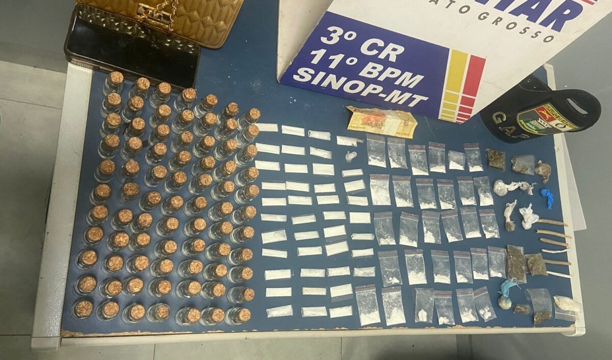 Uma força-tarefa composta por policiais militares resultou no fechamento de uma boate e na apreensão de 169 porções de entorpecentes, incluindo frascos de loló, invólucros de drogas e cigarros de maconha, na madrugada deste domingo (17.11), na Avenida Principal, no bairro Jardim Roma, em Sinop (480 km de Cuiabá).