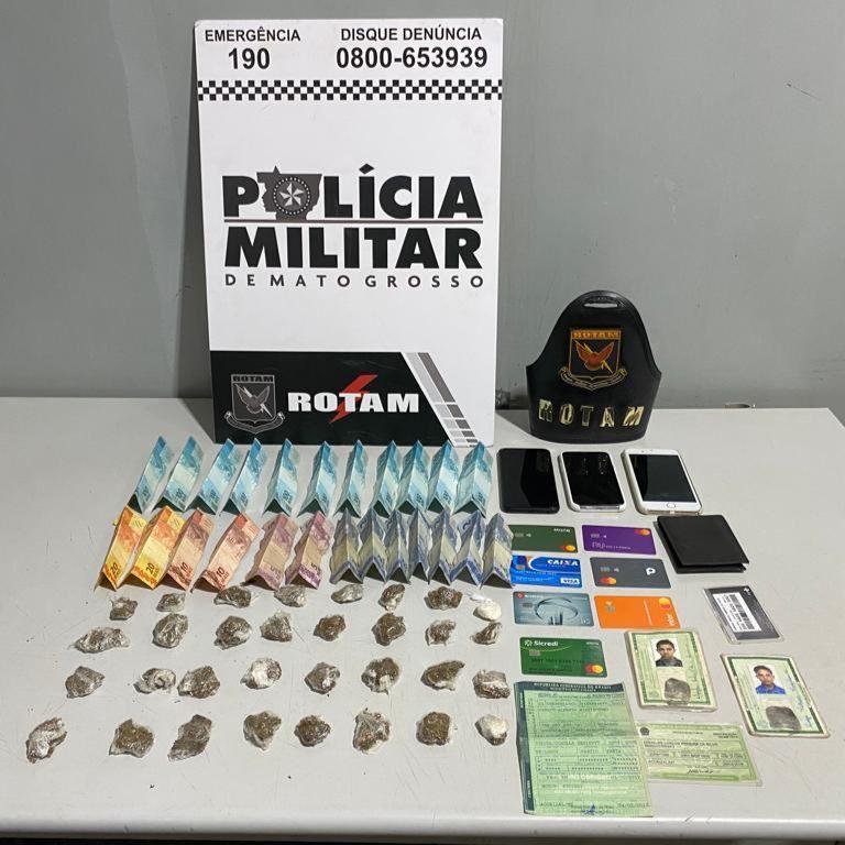 Policiais do Batalhão de Rondas Ostensivas e Tático Metropolitanas (Rotam) prenderam três homens, de 19, 22 e 24 anos, por estelionato e tráfico de drogas, nesta terça-feira (18.01), em Várzea Grande. Com os suspeitos foram apreendidos 32 porções de drogas, R$ 1.200,00 em dinheiro e um veículo Toyota Corolla.