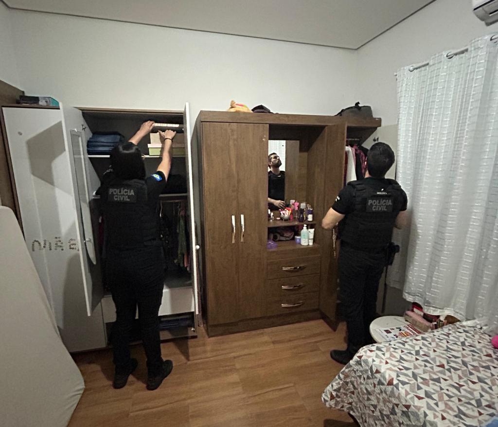 O investigado, de 41 anos, preso em flagrante, foi alvo de mandado de busca e apreensão domiciliar, expedido pela Justiça com base nas investigações conduzidas pela Polícia Civil de Mato Grosso.