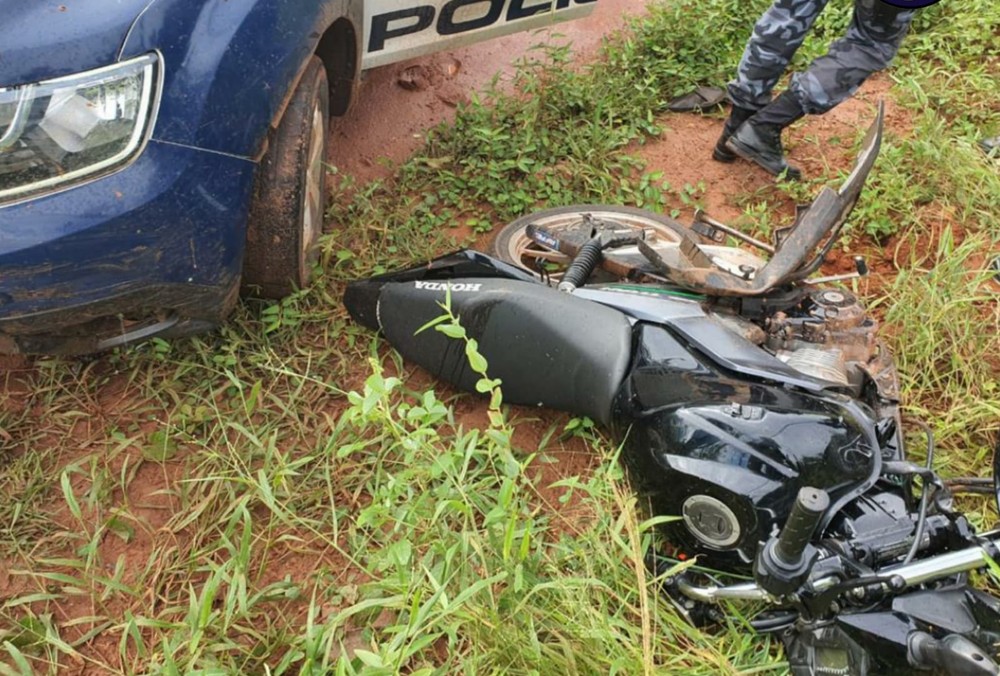 Um homem suspeito de assaltar uma loja na Avenida das Camélias, em Cáceres, a 220 km de Cuiabá, bateu a moto que conduzia de frente com uma viatura da Polícia Militar durante a tentativa de fuga, na Avenida Getúlio Vargas, nessa quarta-feira (9).