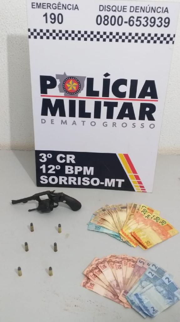 Policiais militares de Sorriso prenderam em flagrantes três homens, de 31, 37 e 42 anos, por porte ilegal de arma de fogo, no bairro Rota do Sol. Na ação, foi apreendido um revólver calibre .32 com seis munições, além da quantia de R$ 1.436,00 em dinheiro.
