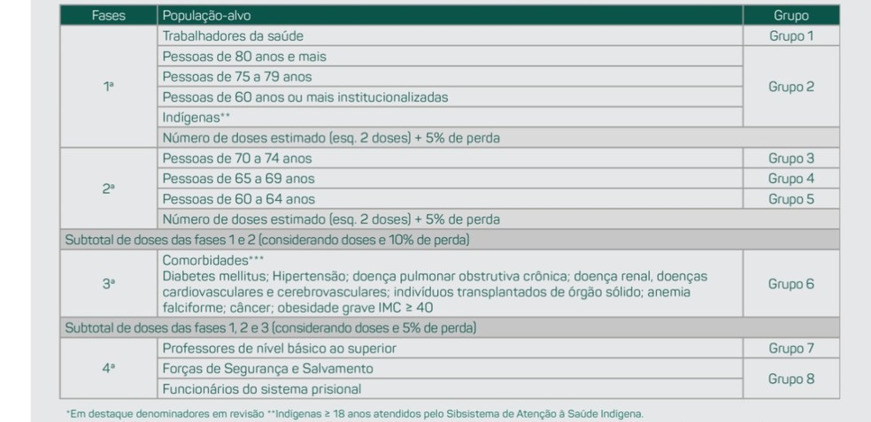 Confira as fases e etapas de vacinação na capital:
