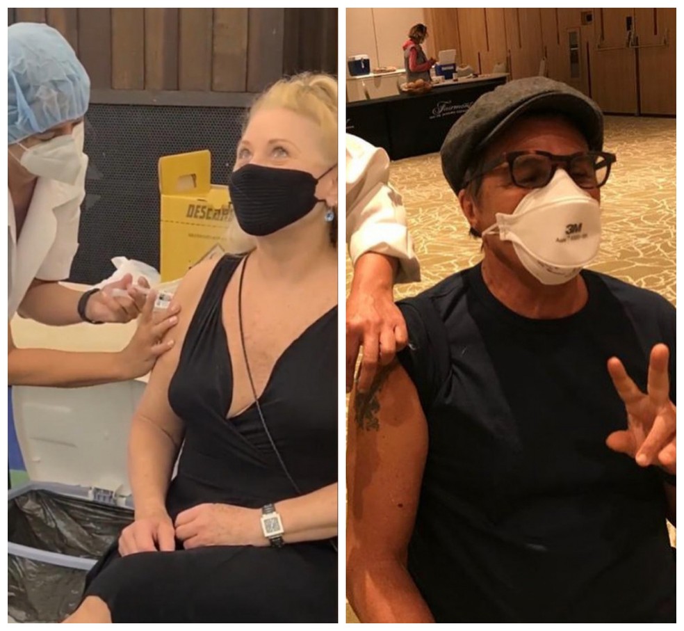 Vera Fischer e Evandro Mesquita, ambos de 69 anos, tomaram a primeira dose da vacina contra a Covid-19 nesta quarta-feira, 31/3. A atriz fez questão de dividir esse momento tão especial com seus seguidores em vídeo. Já o cantor postou fotos.